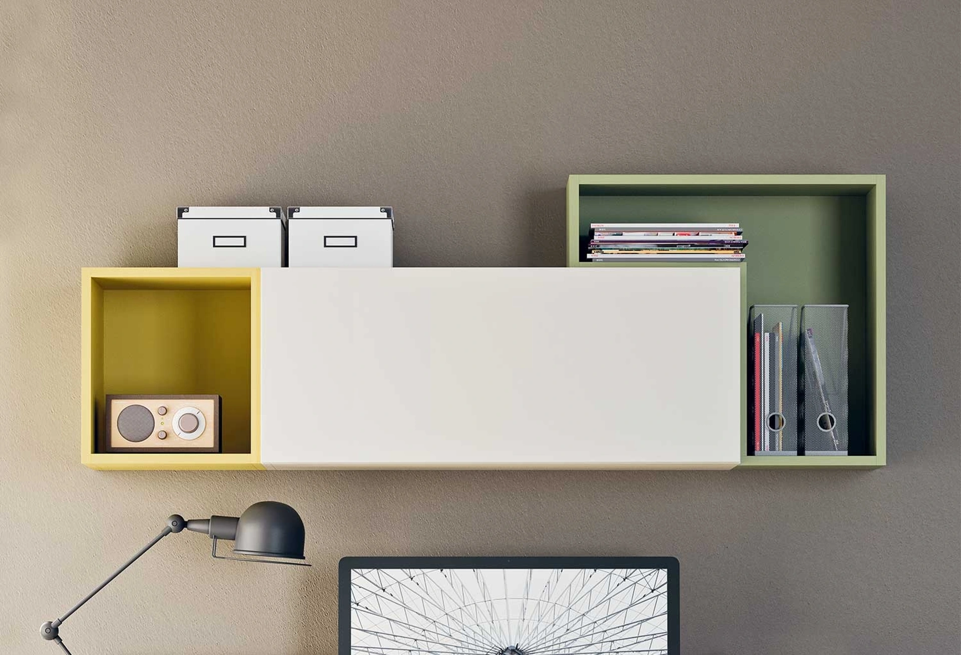 Le composizioni di grande fascino del marchio Clever rendono belli l'ambiente con i loro colori e stile, ricreando peculiari atmosfere arredative. Altamente versatili e multifunzionali, i Complementi moderni in laccato assolvono a funzioni diversificate: ultimano le doti di praticità e il valore estetico del locale. In negozio potrai vedere dal vivo la qualità dei modelli di mensole moderni in laccato della firma, proprio come questa soluzione in foto. Complementi e mensole personalizzano l'arredo di casa, occupando lo spazio in modo utile e rendendolo assai funzionale e di grande valore estetico. Mensola Box di Clever in laccato: conferirà personalità e charme a un interno arredato con mobili ed elementi accessori dai richiami moderni.