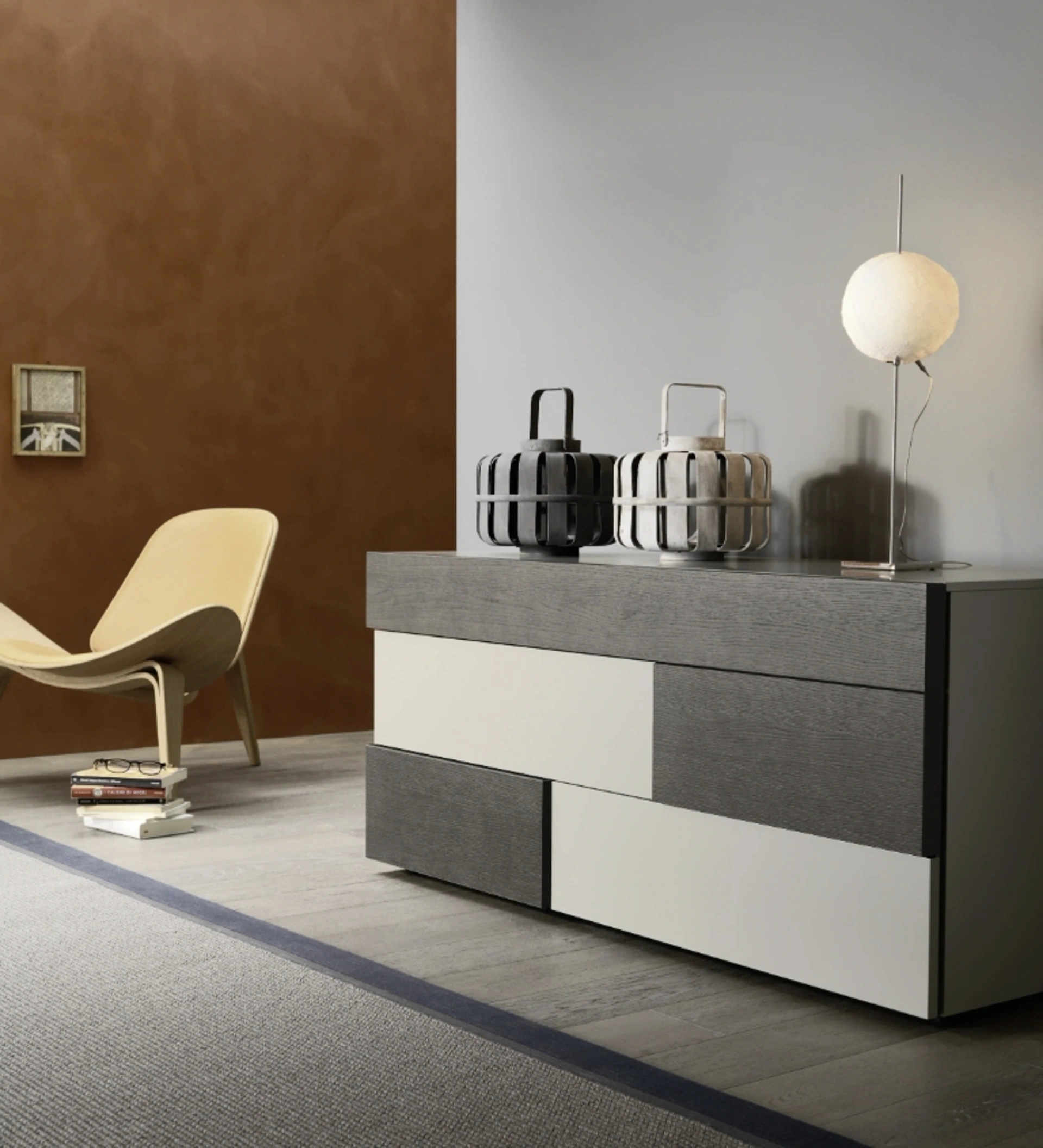 Scopri Comodini moderni e mobili con cassetti Sangiacomo! Il modello Insieme Comò costruito in laccato opaco è la scelta ideale.