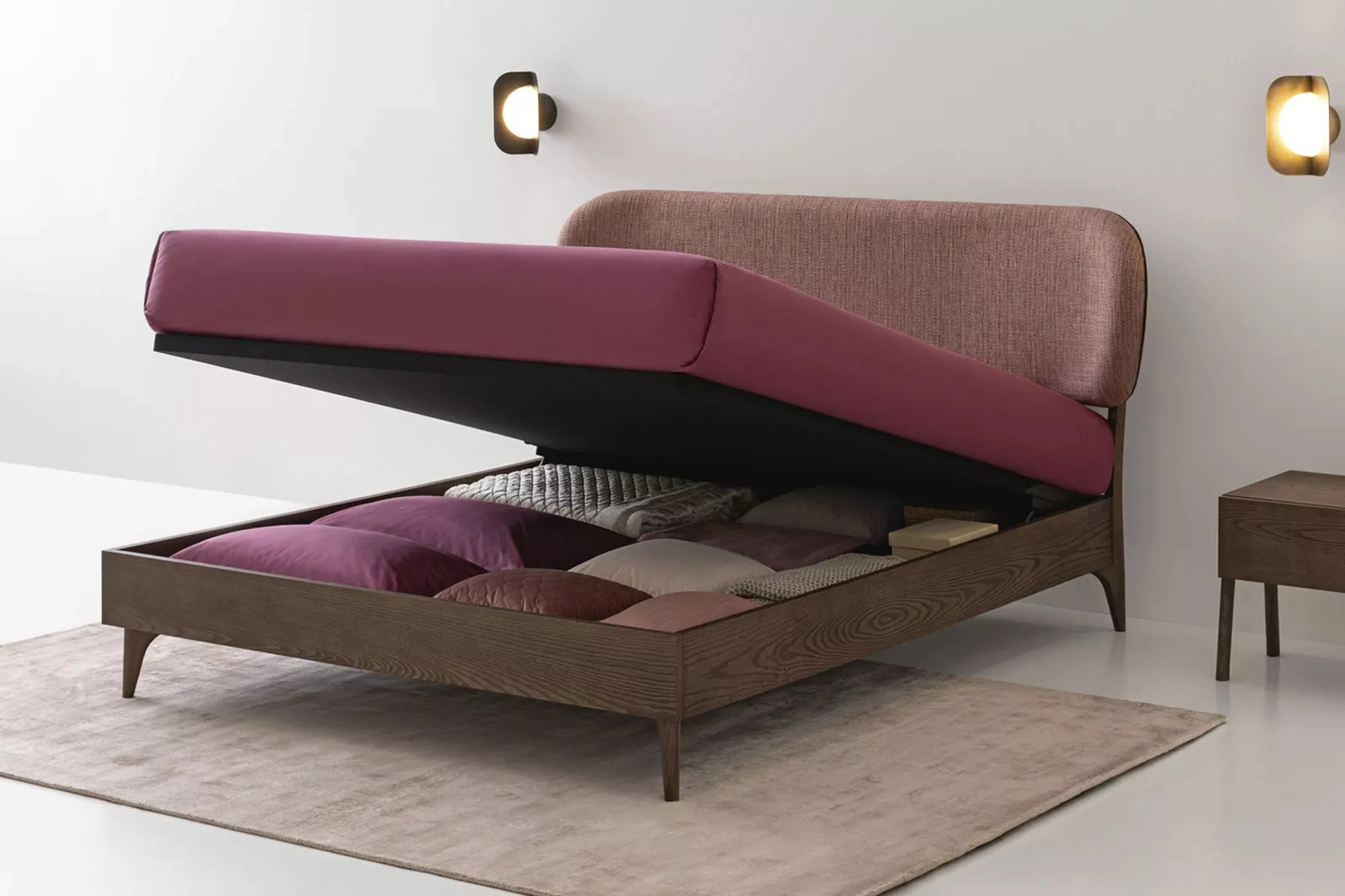 Per completare alla perfezione l'arredo della tua camera da letto è essenziale valutare gli abbinamenti del letto con armadi e comodini, accessori e quant'altro: se vuoi mobili moderni, il modello nella fotografia fa al caso tuo. Il Letto Mirabel con box contenitore di Oggioni è uno tra i prodotti più esclusivi della firma, sinonimo di resistenza negli anni, qualità delle finiture e un design unico. Contattaci e ottieni informazioni sulla nostra serie di Letti matrimoniali con contenitore: valorizza la tua camera con le nostre soluzioni.