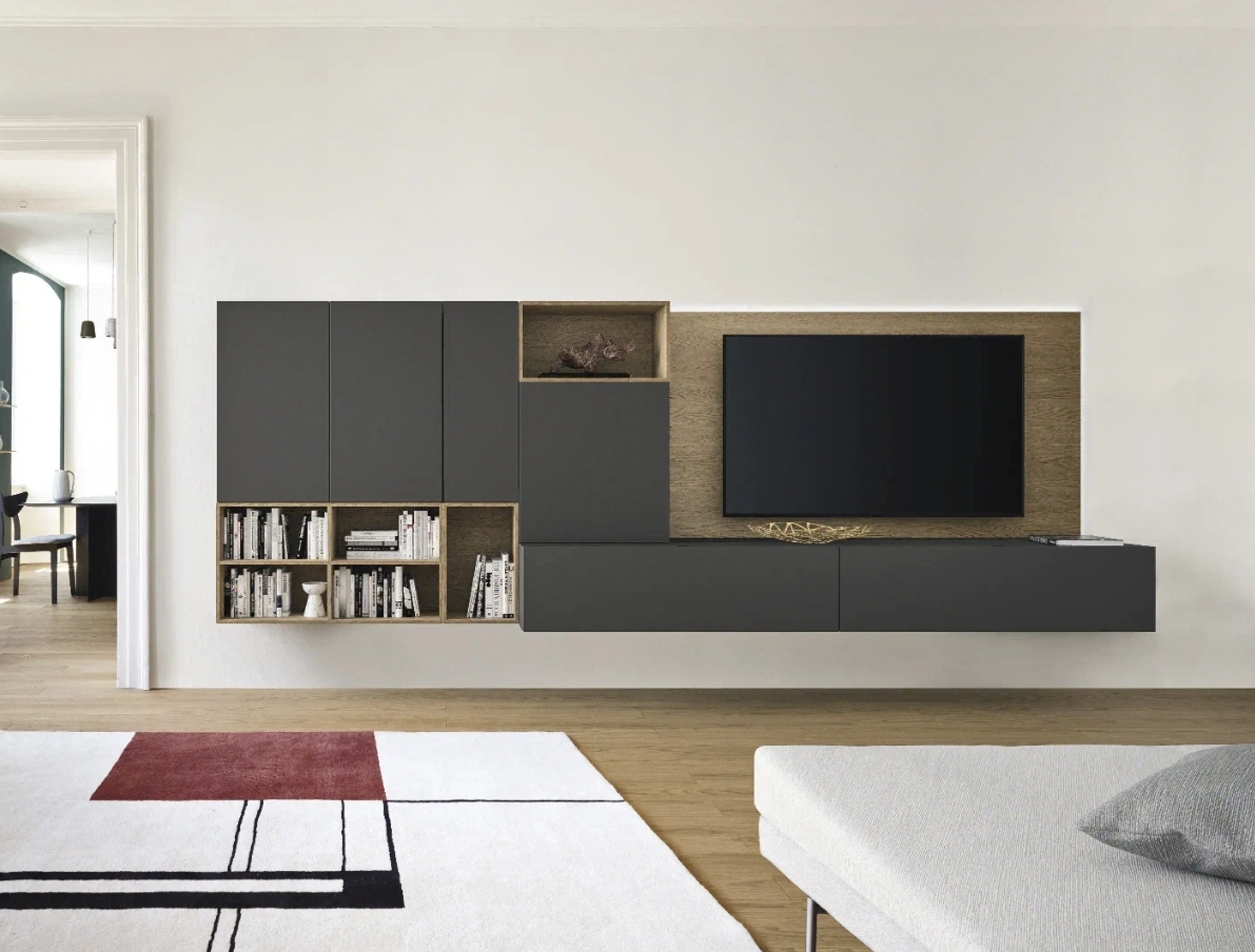 Clicca e scopri il modello Pannello TV Sangiacomo: questo mobile per la televisione in laccato opaco è tra le più originali soluzioni per il living.