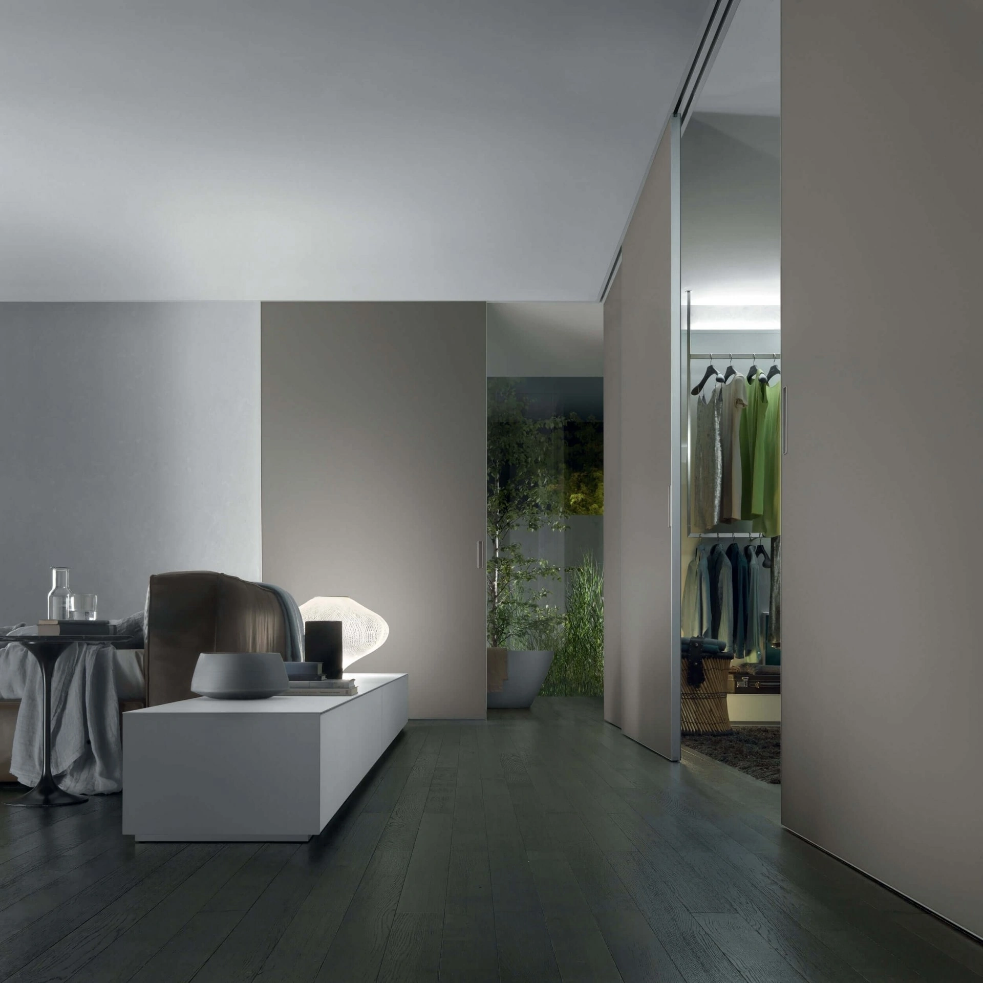 Con le porte da interno scorrevoli design come il modello Graphis Light di Rimadesio potrai ultimare il tuo concept d'arredo.