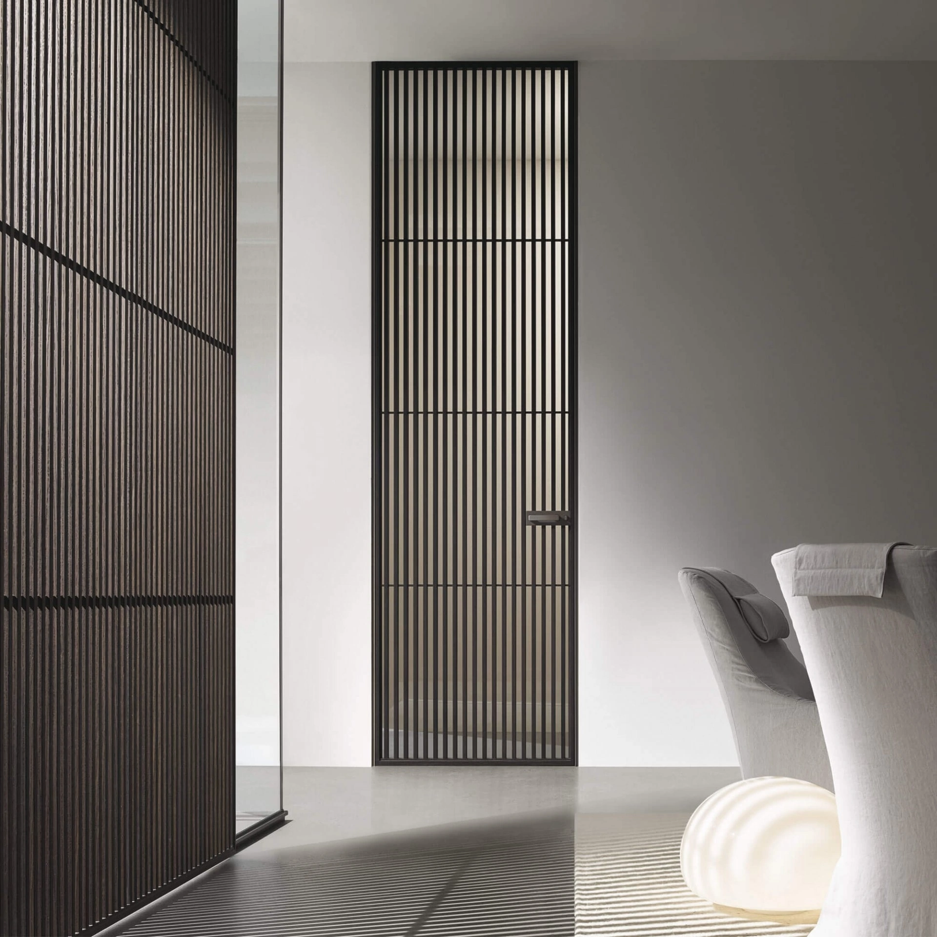 Se vuoi porte per interni a filo muro design, clicca e scopri il modello in legno Sail di Rimadesio!